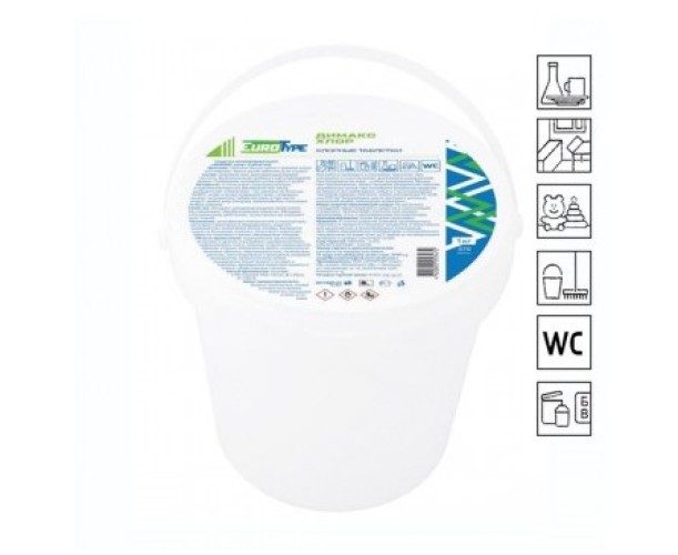 Димакс хлор – профессиональное хлорсодержащее дезинфицирующее средство. Эффективное, экономичное, с высоким содержанием активного хлора. Обладает высокой микробицидной активностью в отношении грамотрицательных и грамположительных бактерий, вирусов, патогенных грибов. Рекомендуется для дезинфекции поверхностей и предметов, обеззараживания медицинских отходов. Форма выпуска: в таблетках. В упаковке 370 таблеток (1 килограмм).